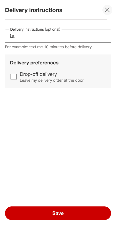 Due to address being owned by another team, they felt delivery instructions was not quite ready to be moved into SDD due to the other areas of Target this could affect. For now, it will remain in SDD but with the potential and user research to make the best decision on it going forward. Since it would remain in SDD, I decided to keep it in a modal to stay aligned with the behavior with the other features in SDD.