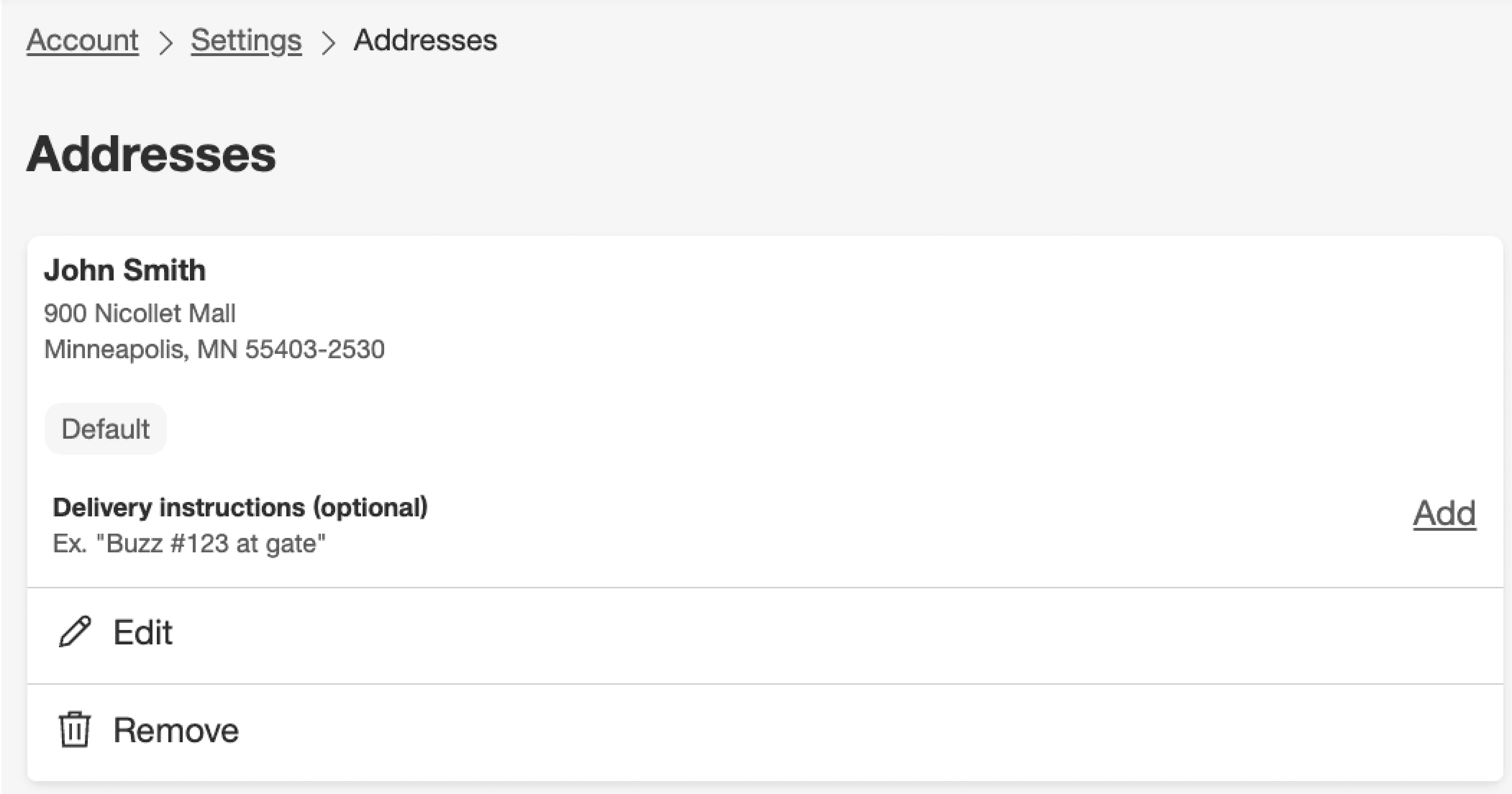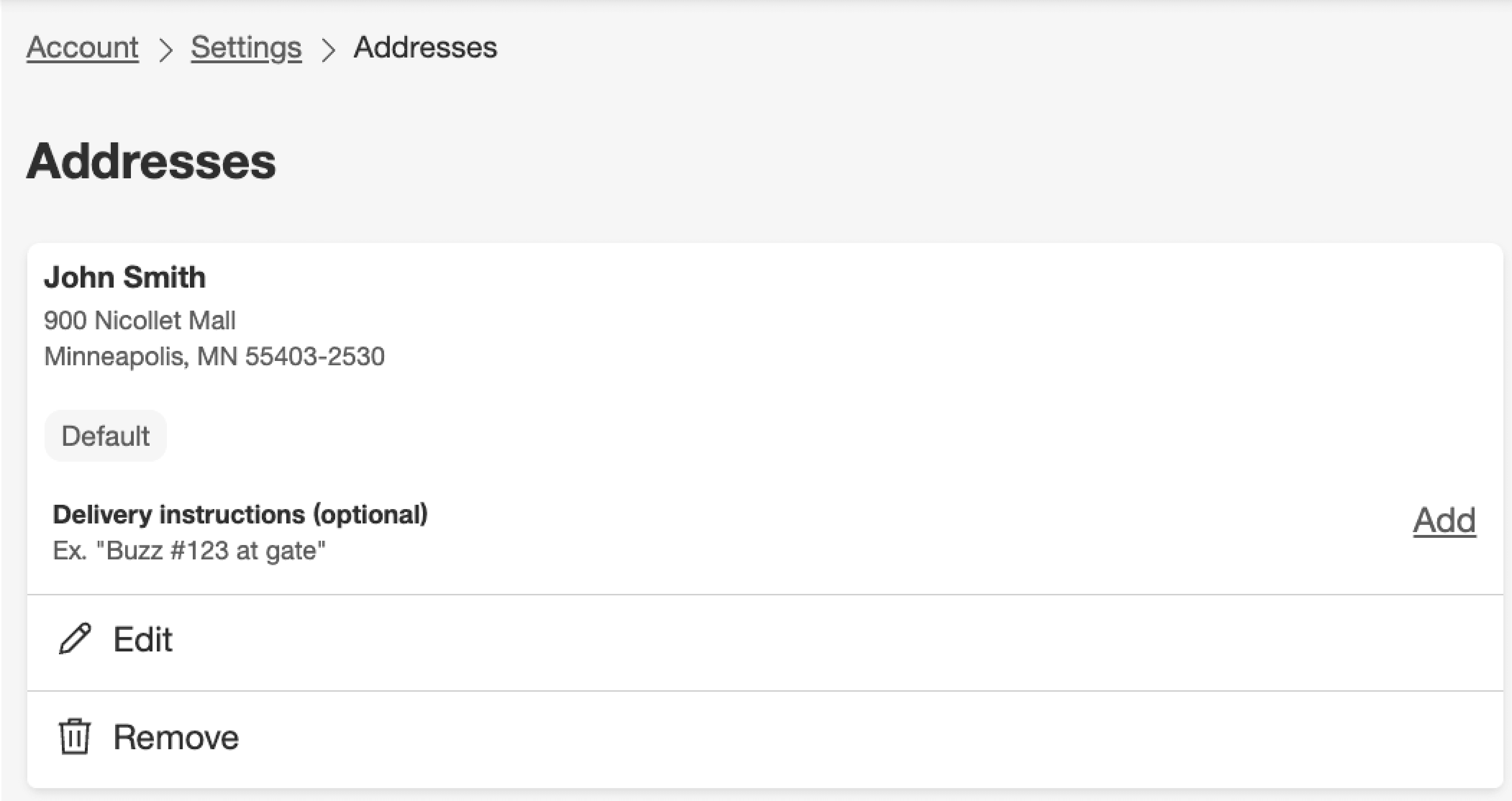 However, some participants pointed out that the instructions might be seen as a “global” instruction that would apply to all of their registered addressed. I refined the copy to “Save instructions to this address” to further clarify instructions applying to a specific address.
