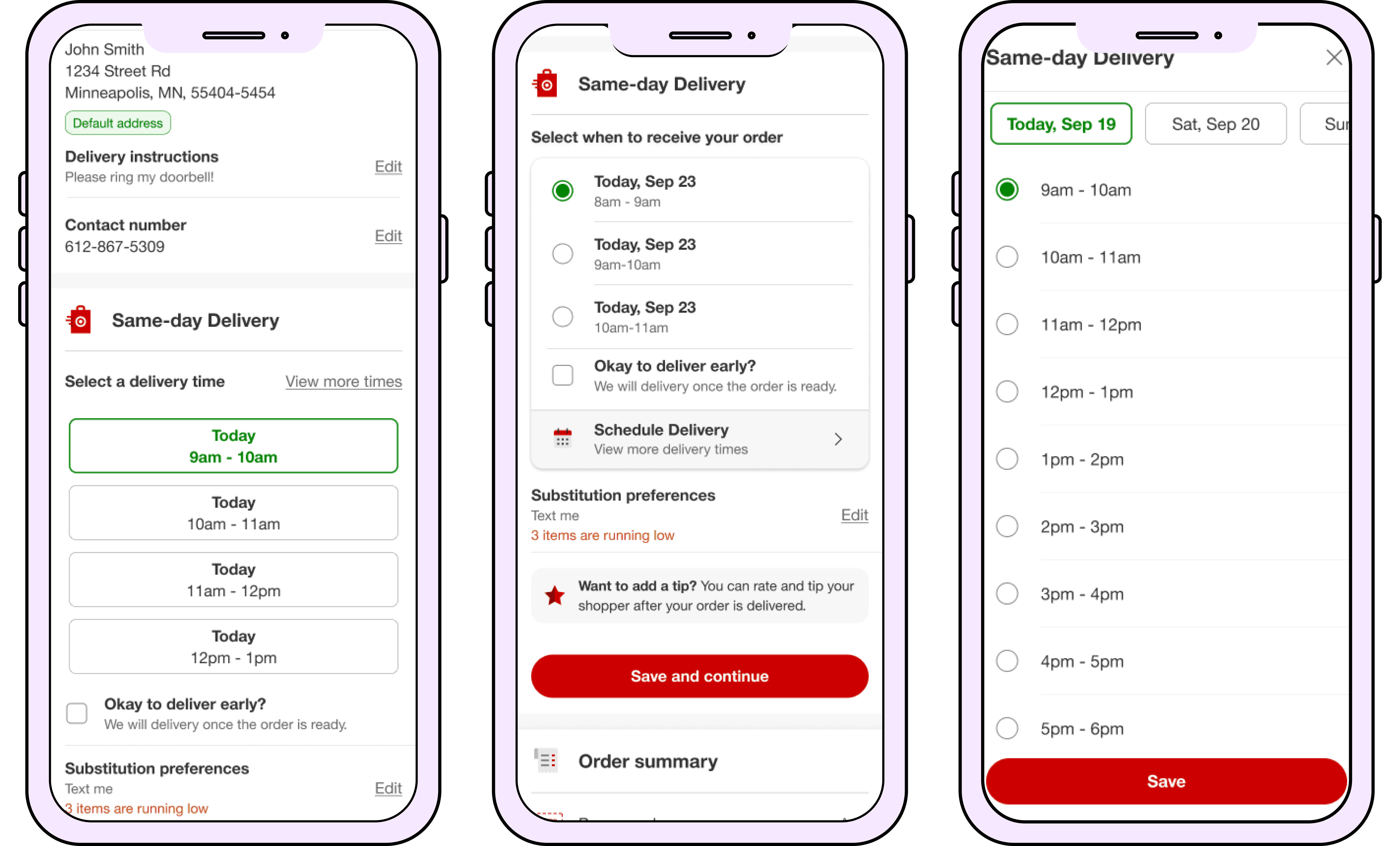 After analyzing the Shipt research, I decided to prioritize solutions showing 1 hour window slots to help provide user’s with more of a sense of confidence in their orders.